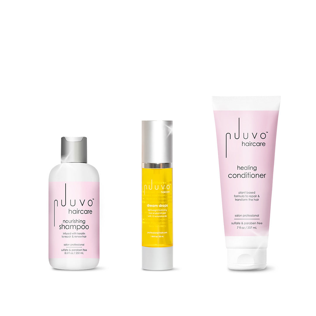 Experience the transformative power of Nuuvo Haircare's Award-Winning Nourishing Shampoo & Healing Conditioner Set, crafted to breathe life back into your hair with every wash. Free from sulfates and parabens, this professional-grade duo is designed to cleanse, nourish, and deeply condition your hair, leaving it instantly softer, shinier, and more manageable.